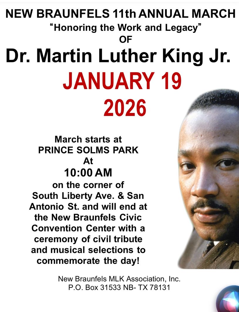 If you (or someone you know) is or will be 25 years of age or older by December 31, 2024. lives in New Braunfels and/or Comal County and needs assistance to get the training or education they need to become more financially independent, then please apply for our $2,000 scholarship which will be awarded at the MLK Day Ceremony on January 20, 2025. Apply by using the form at https://form.jotform.com/242516045374151 Deadline is midnig, Tuesday, December 31, 2024. Please contact info@nbmlk.com with questions or concerns.